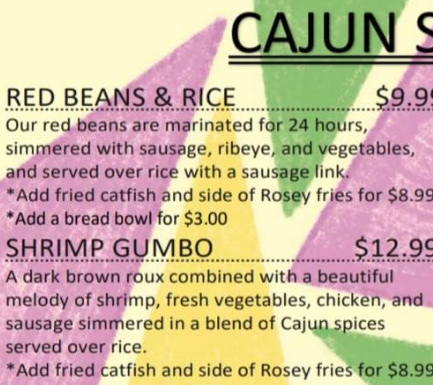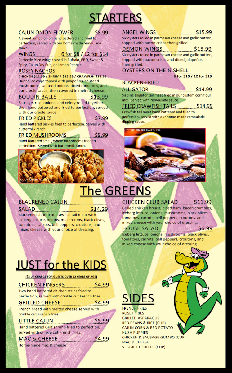The menu at Rosey Baby in Starkville offers a delightful mix of flavors, with a strong focus on Cajun specialties and hearty comfort food, making it a must-visit for anyone in the area. For those who enjoy a cold drink, they can choose from a variety of Draft Beer options to accompany their meal.